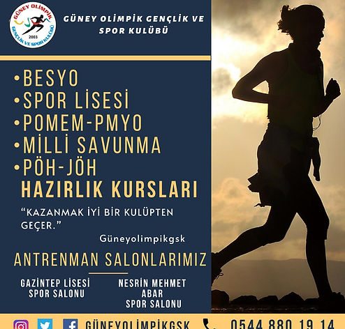 Güney olimpik akademisi gençlik Spor genel müdürlüğüne bağlı bir spor kulübüdür. Bu sebepten dolayı hazırlık sürecinde tüm öğrencilerimize lisans tescil işlemi yapılmaktadır bu özelliğimizle öğrencimiz yetenek sınavlarına daha avantajlı girmiş bulunmaktadır.
